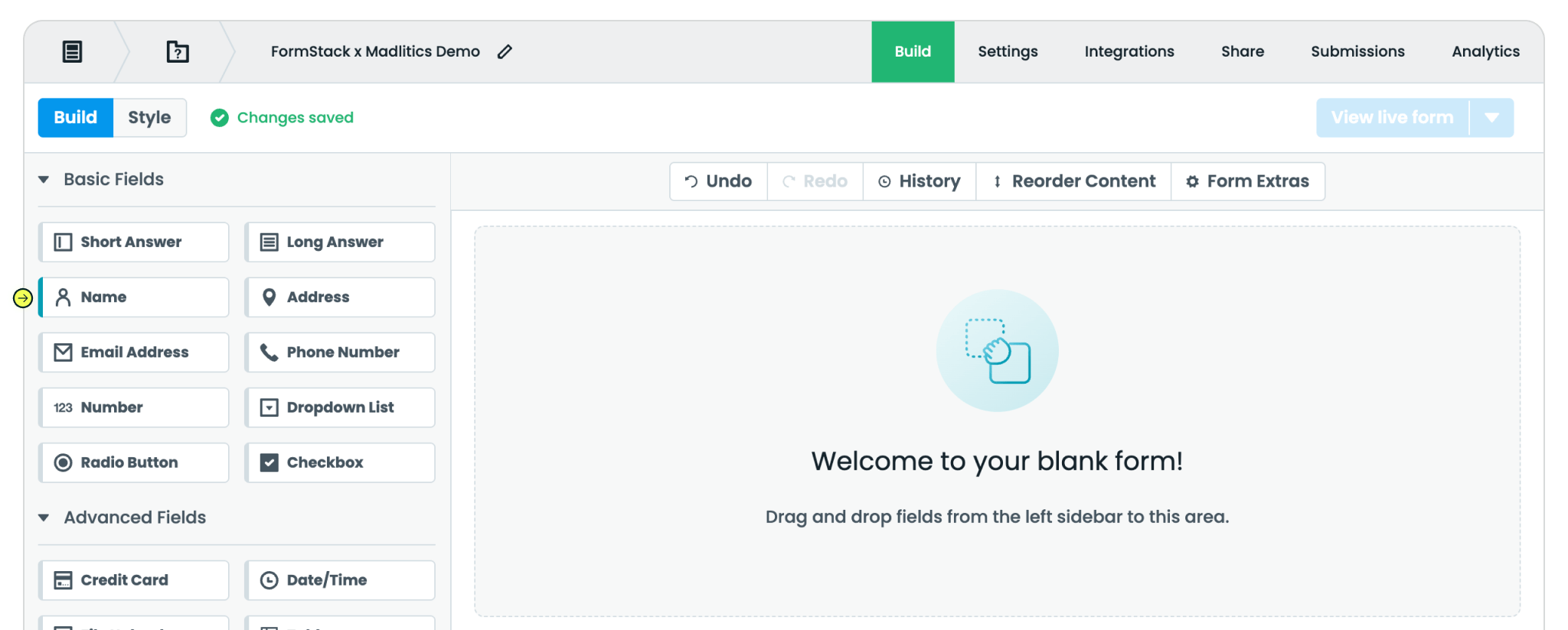 In this guide, we’ll walk through creating a new form in Formstack, adding Madlitics fields, and publishing it so you can start capturing clean, first-party attribution data right away.