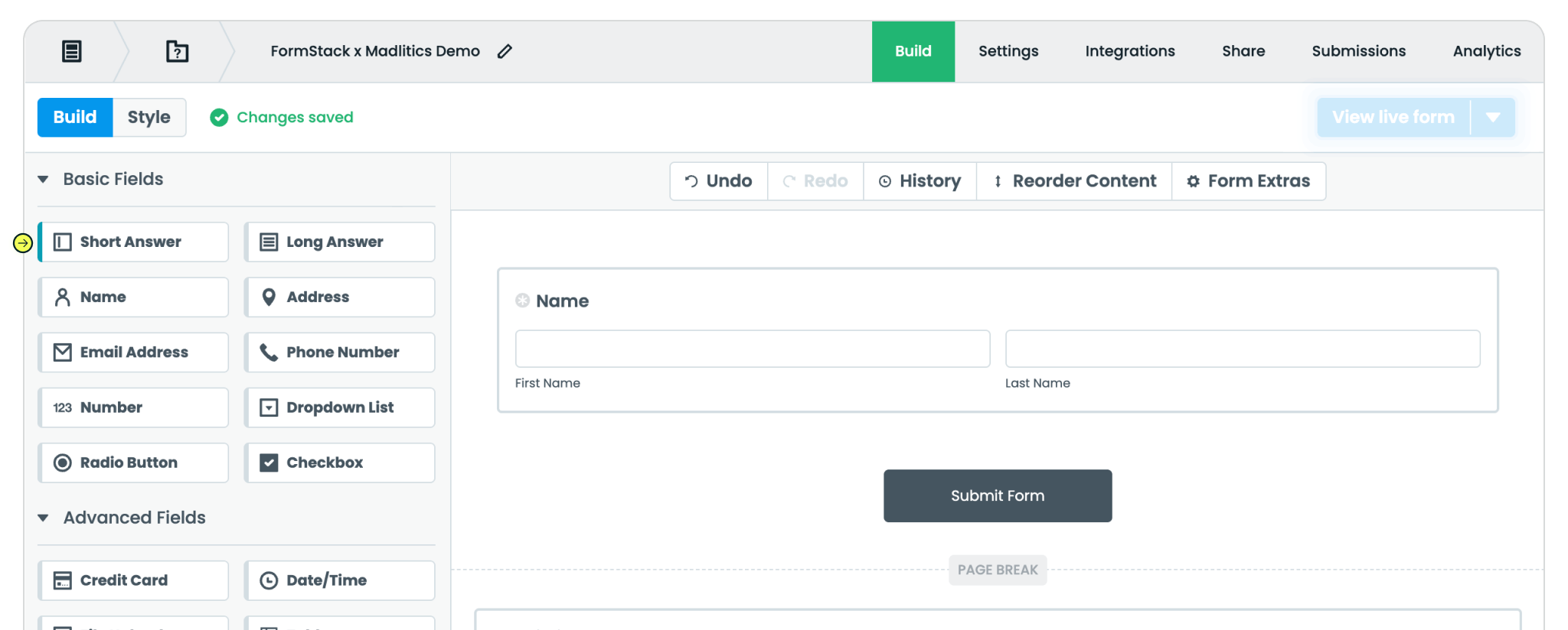 💆 Heads-up: Make sure Madlitics is installed on the site where this Formstack form lives. The form alone won’t capture attribution data — Madlitics needs to be running on the page to pass visitor details into your submissions. Installing Madlitics ->