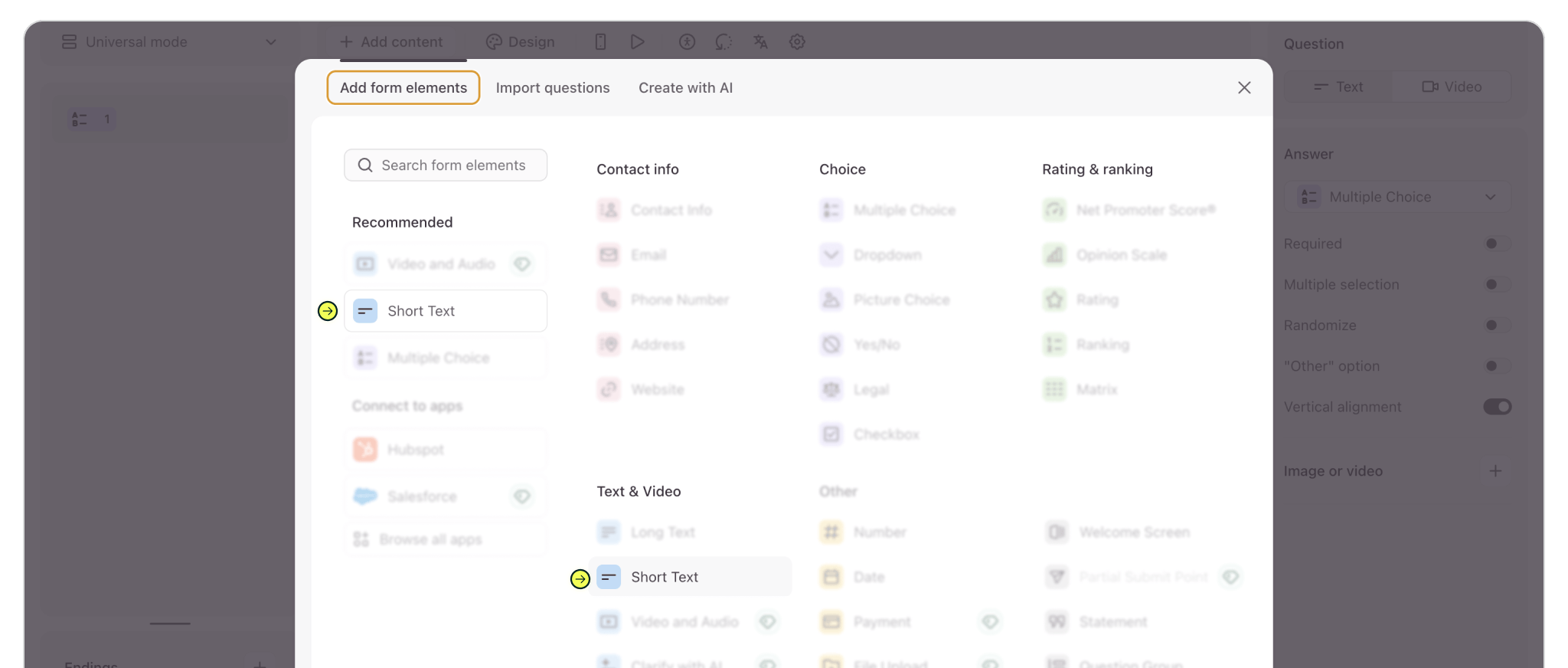 To get started, log in to your Typeform dashboard or create a free account if you don’t already have one. From there, you’ll build your form just like you normally would — whether that’s a simple contact form, a survey, or something more advanced. Typeform gives you flexibility to start completely from scratch, import existing questions, or even use AI to generate your form.