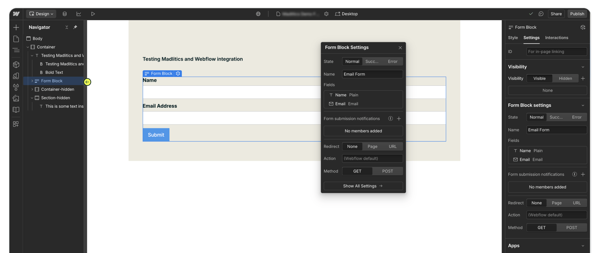 Integrating Madlitics with Webflow forms