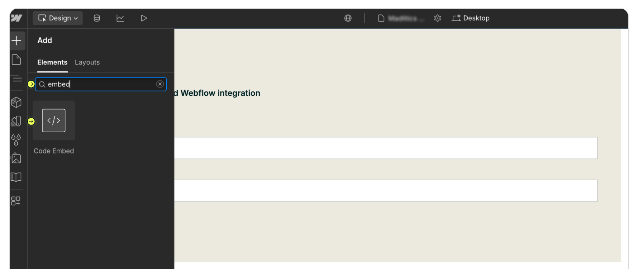 Start by opening the Webflow Designer and pulling in a form block. You’ll find it in the Add Elements panel, or just type “form” into the search bar to bring it up right away. Drag the form block onto your page wherever you’d like it to appear—this will be the foundation for capturing lead details along with your Madlitics attribution data.