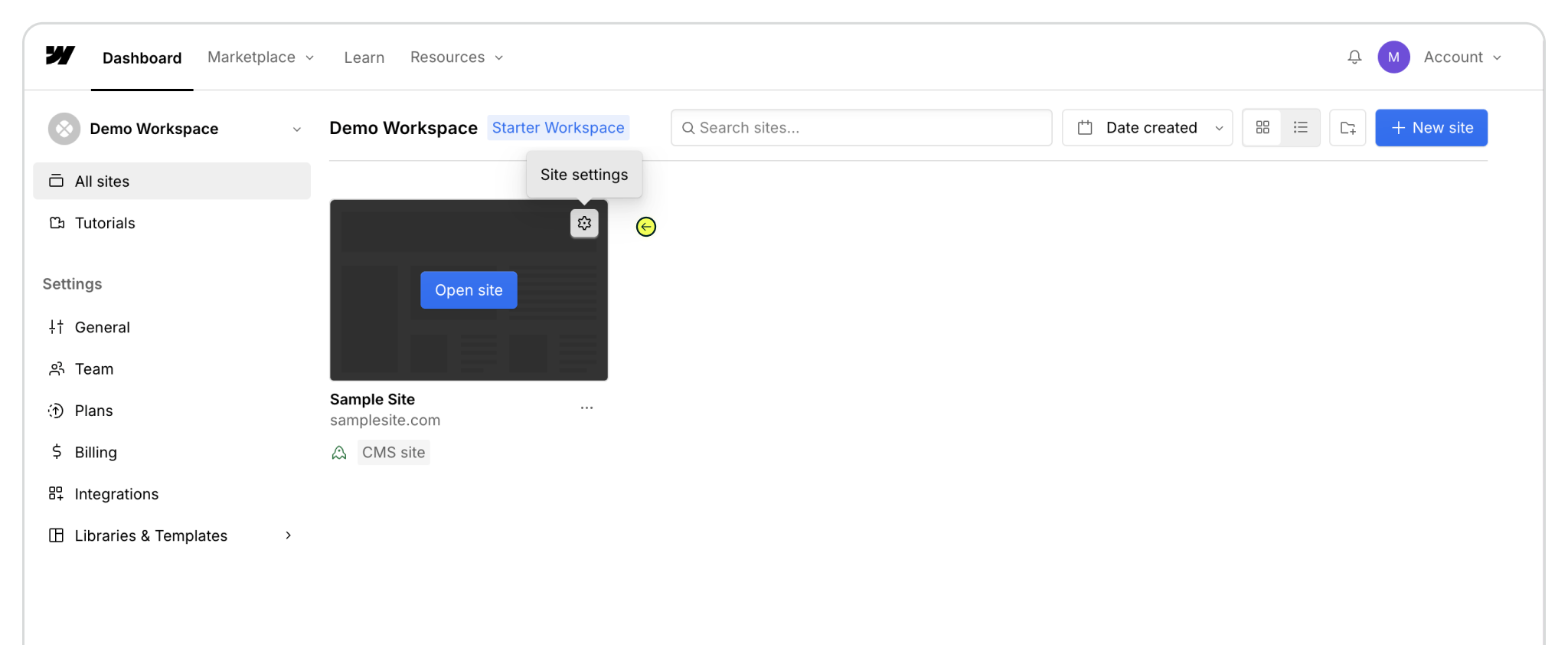 Now that you’ve got your code, open Webflow and head into Site Settings for the project you want to update.