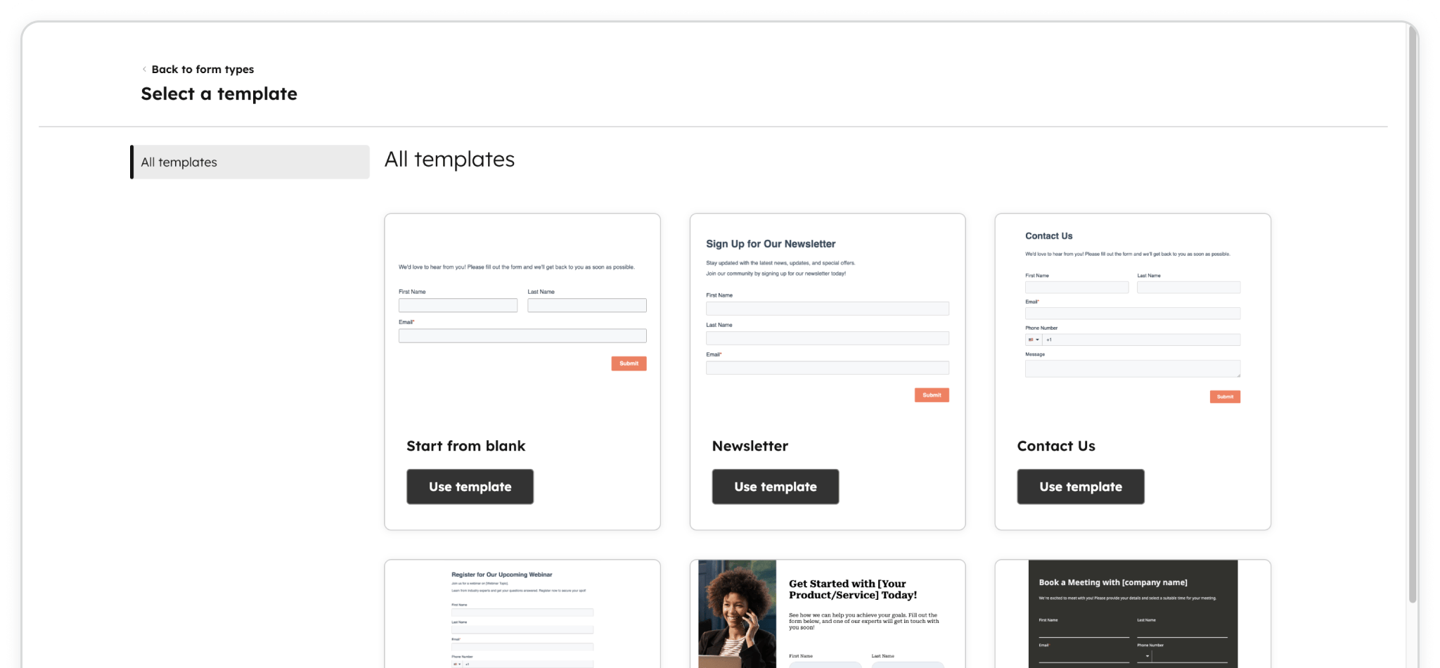 Build your form however you like — add standard fields like Name, Email, Phone, or custom questions for your visitors. HubSpot's drag-and-drop editor makes this straightforward.
