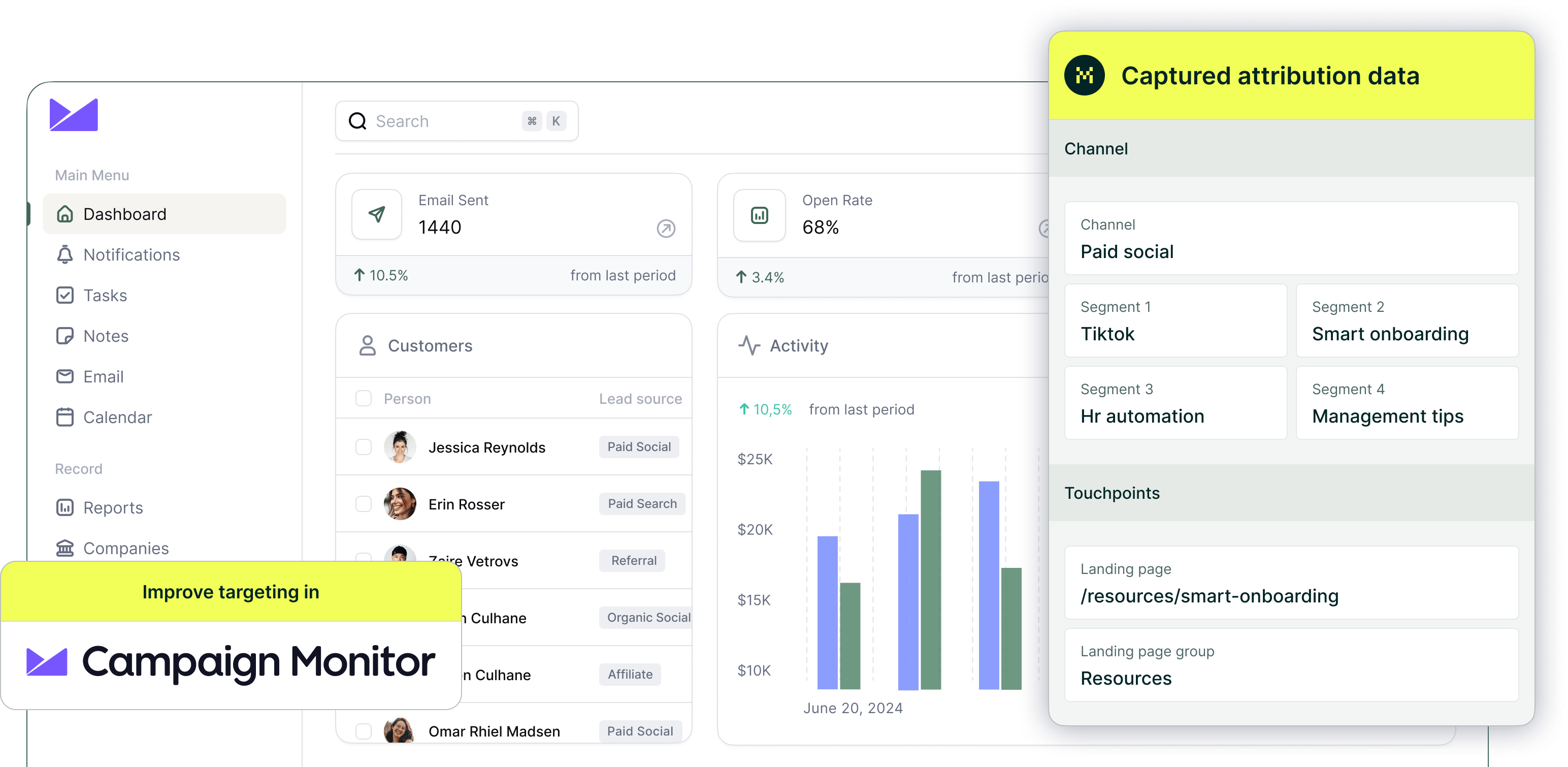 Delivering marketing attribution data straight into your marketing tools, giving you a complete view of lead sources, campaigns, and marketing performance.