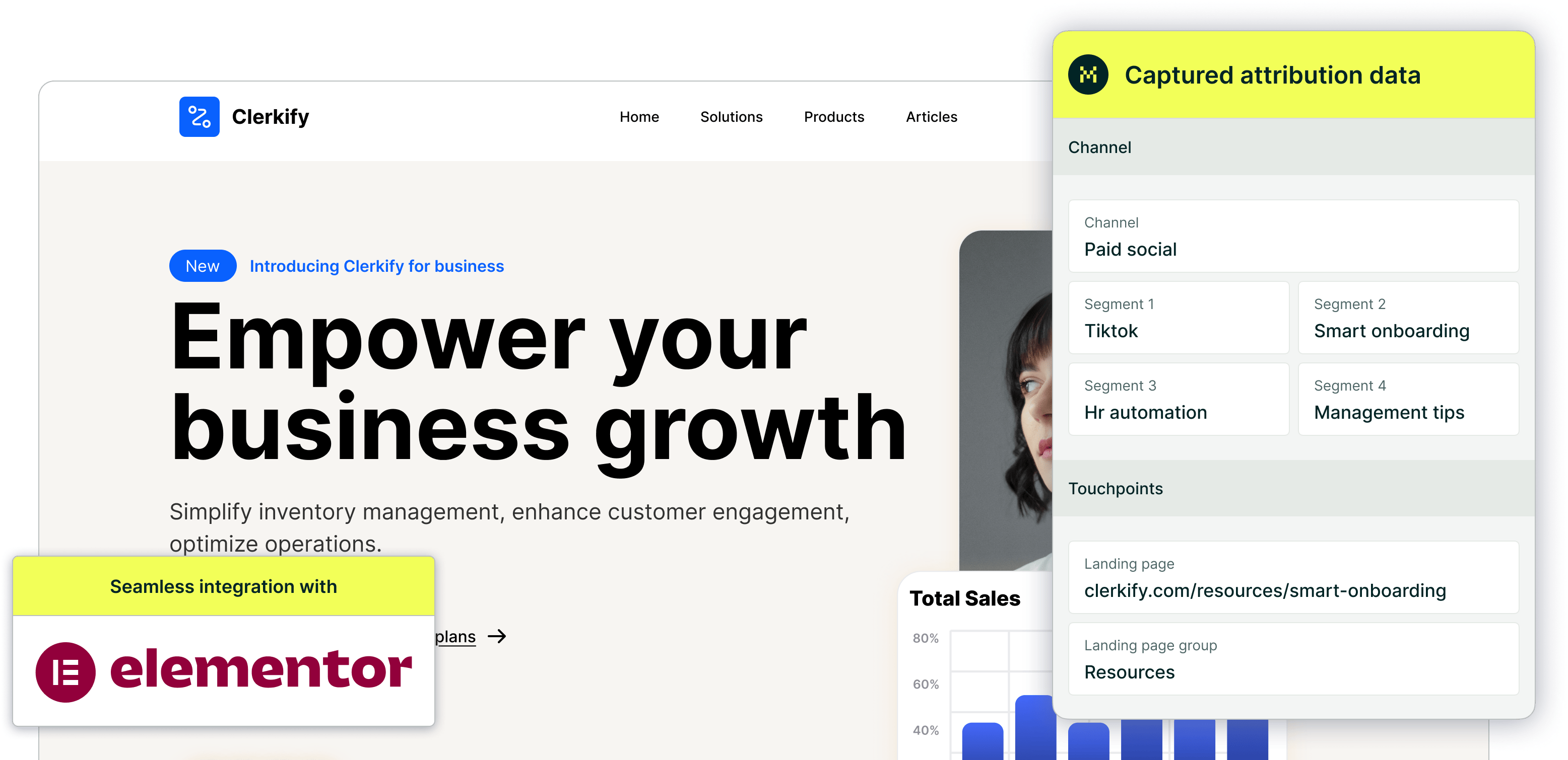 Improve Elementor Forms with first-touch attribution — Madlitics collects UTM parameters, campaign data, and lead origins for better CRM and marketing tool integration.