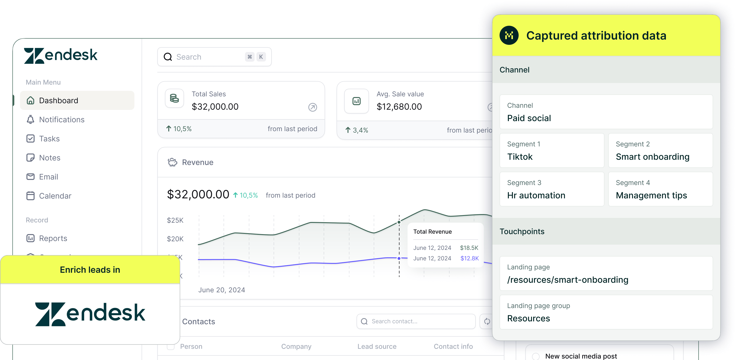 Track where customer inquiries originate in Zendesk — Madlitics captures first-touch attribution, campaign details, and UTM parameters for better support and engagement.